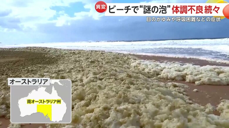 ビーチを覆いつくす“謎の泡” 目のかゆみ・呼吸困難などの人… ギャラリー 1/21 記事に戻る 2/21 記事に戻る 3/21 記事に戻る 4/21 記事に戻る 5/21 記事に戻る オーストラリアの海岸で発生した謎の泡 6/21 記事に戻る 7/21 記事に戻る 8/21 記事に戻る 泡の影響で死んだとみられる魚などの死骸も複数確認 9/21 記事に戻る 泡の影響で死んだとみられる魚などの死骸も複数確認 10/21 記事に戻る 11枚目以降の画像を見る 1 2 3