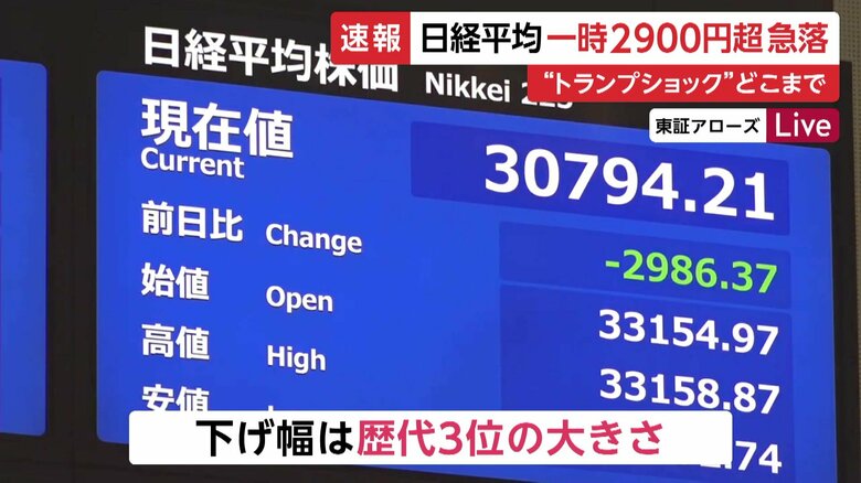 “トランプショック”で日経平均株価は一時2900円超急落…過去…