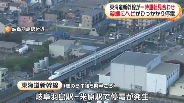【まさか】原因は「ヘビ」…東海道新幹線が一時運転見合わせ …