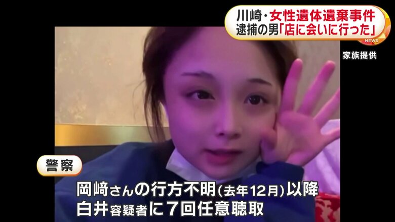 「働く店に会いに行った」白井秀征容疑者(27)が岡﨑彩咲陽さ… ギャラリー 1/14 記事に戻る 元交際相手の岡﨑彩咲陽さんの遺体を川崎市の自宅に遺棄した疑いで送検された白井秀征容疑者 2/14 記事に戻る 岡﨑さんが行方不明になって以降、警察は白井容疑者に7回の事情聴取を行っていた 3/14 記事に戻る 岡﨑さんは「周りをうろうろしている」などとストーカー被害を訴えていた 4/14 記事に戻る 5/14 記事に戻る 6/14 記事に戻る 7/14 記事に戻る 8/14 記事に戻る 9/14 記事に戻る 10/14 記事に戻る 11枚目以降の画像を見る 1 2