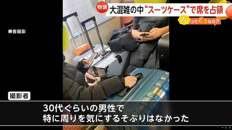 【迷惑】大混雑の中“スーツケース”で席占領…あなたなら注意… ギャラリー 1/13 記事に戻る 2/13 記事に戻る 3/13 記事に戻る 4/13 記事に戻る 5/13 記事に戻る 6/13 記事に戻る 「特大荷物スペース」に置かれた荷物 7/13 記事に戻る 8/13 記事に戻る 座席にスーツケースを乗せ、席を占領する男性 9/13 記事に戻る 大きいスーツケースを置くために車内に設けられている「特大荷物スペース」 10/13 記事に戻る 11枚目以降の画像を見る 1 2