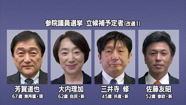 夏の参議院選挙公示まで1カ月 熱帯びる前哨戦・山形選挙区の… ギャラリー 1/19 記事に戻る 山形選挙区で立候補を予定している4人(6月3日時点) 2/19 記事に戻る 無所属の現職・芳賀道也氏(67) 3/19 記事に戻る 物価高に対応し、ガソリン・電気代の引き下げなど生活者目線で訴える 4/19 記事に戻る 共産党の独自候補擁立で“与党の批判票”が割れる見通しで、厳しい選挙戦が予想される 5/19 記事に戻る 「困っている人の声に耳を傾け、何とかするのが政治」と語る芳賀氏 6/19 記事に戻る 元県議で自民党・新人の大内理加氏(62) 7/19 記事に戻る 自民党県連大会に衆議院議員・小渕優子氏が参加するなど党の組織力を駆使 8/19 記事に戻る 政治生命をかけて今回の参議院選挙に臨む 9/19 記事に戻る 「県民が心だけでなく経済的にも豊かに生活できるよう地方の声を反映する」と話す 10/19 記事に戻る 11枚目以降の画像を見る 1 2