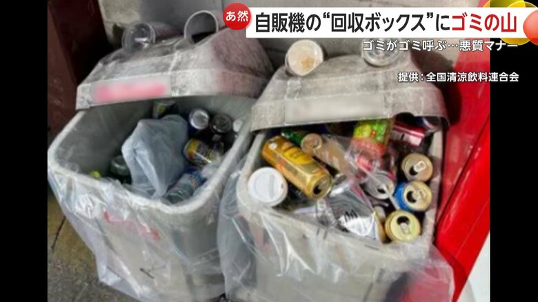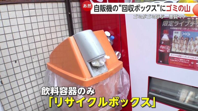 【マナー違反】自販機横の“回収ボックス”周辺に大量のゴミ散…