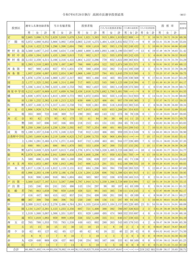 高岡市長選挙 投票率は55.65% 前回選挙を3.06ポイント下回る…