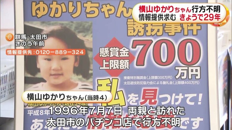 群馬・太田市の横山ゆかりちゃん行方不明事件から29年…県警が…