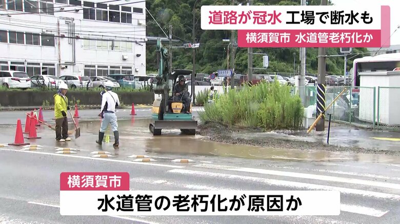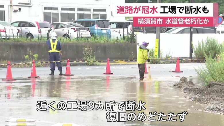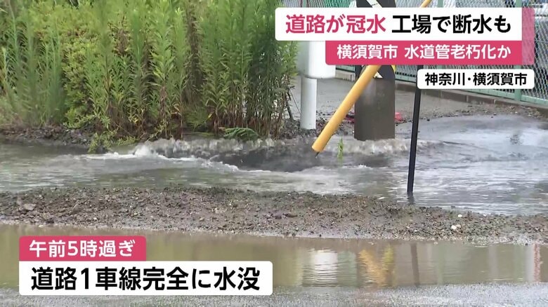 「早朝の交差点道路が水没」老朽水道管から水漏れか?付近の工…