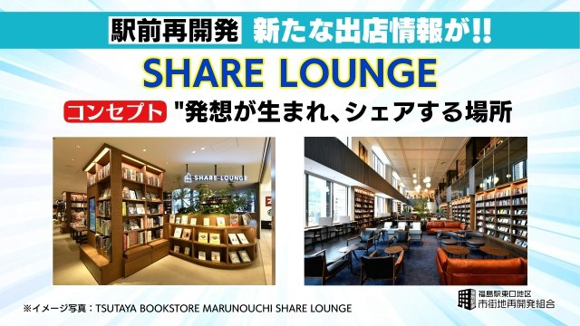 JR福島駅東口の再開発ビル TSUTAYA運営会社が手がける「SHARE… ギャラリー 1/7 記事に戻る 福島県初出展のシェアラウンジ 2/7 記事に戻る JR福島駅東口の再開発ビル 3/7 記事に戻る 出店イメージ(提供:福島駅東口地区市街地再開発組合) 4/7 記事に戻る 2025年1月時点のイメージ(提供:福島駅東口地区市街地再開発組合) 5/7 記事に戻る 特徴3 フリードリンクとフード 6/7 記事に戻る 特徴2 居心地の良い空間 7/7 記事に戻る