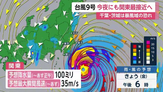 【台風情報】台風9号今夜からあす朝にかけ関東に最接近の見込…