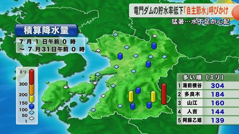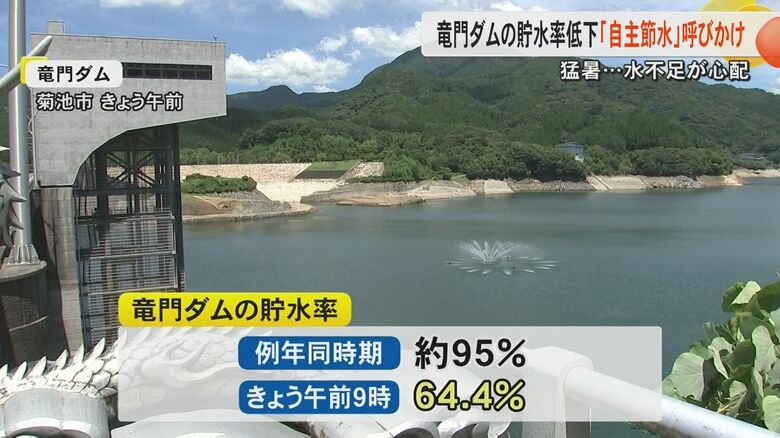 水不足対策で『自主節水』を 熊本・菊池市の竜門ダムの貯水率…