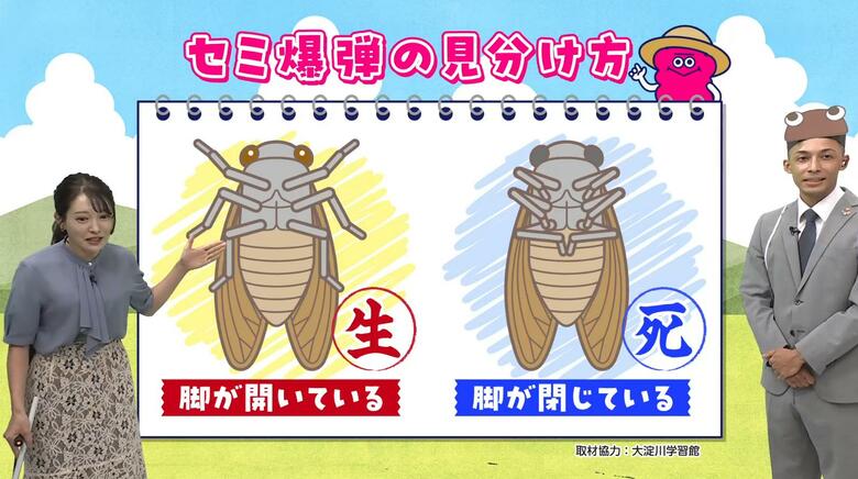 「セミ爆弾」の見分け方は「脚の開き具合」「羽の色」どちら?…