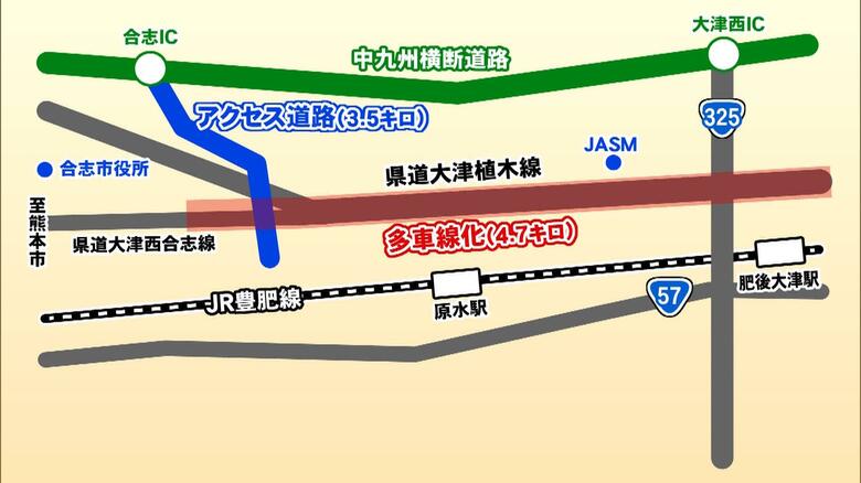 2車線から最大6車線も可能な道幅に交差点は立体交差 県道大津…