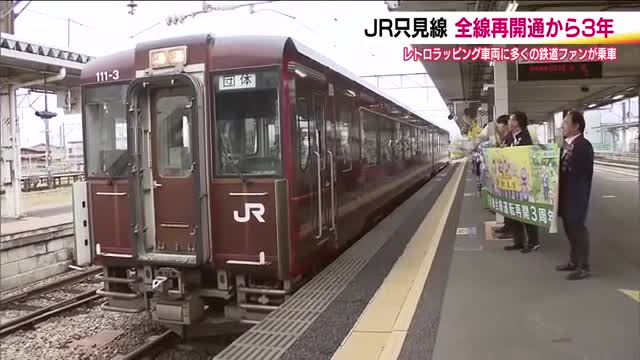 秘境路線の復活で盛り上がるも赤字運行 全線再開通から3年・J… ギャラリー 1/8 記事に戻る 3周年を記念し運行したレトロラッピング車両(2025年10月1日) 2/8 記事に戻る 社内ガイドを務めた金山町観光物産協会の大越智貴さん 3/8 記事に戻る 地元の人たちもお祝い 4/8 記事に戻る 会津柳津駅で列車を出迎える伊藤千晴さん 5/8 記事に戻る 秋のJR只見線 絶景が楽しめる秘境路線 6/8 記事に戻る JR只見線(会津川口駅~只見駅)の平均通過人員 7/8 記事に戻る 只見線地域コーディネーターの酒井治子さん 8/8 記事に戻る