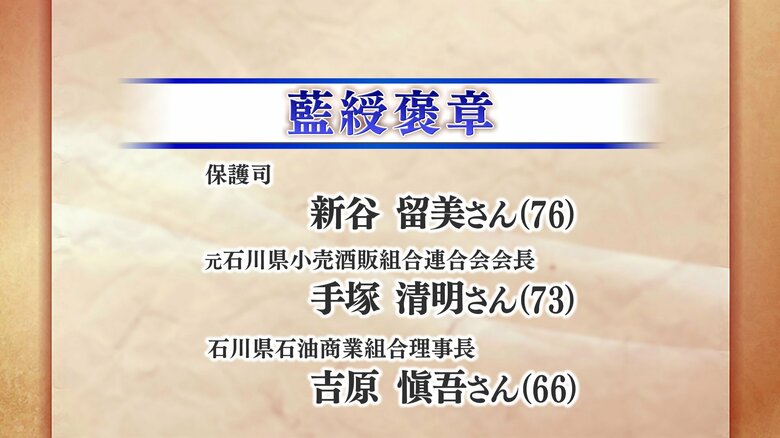 【受章者詳細】秋の褒章に石川県内から2団体と女性3人含む11人… ギャラリー 1/7 記事に戻る 2/7 記事に戻る 3/7 記事に戻る 4/7 記事に戻る 5/7 記事に戻る 6/7 記事に戻る 7/7 記事に戻る