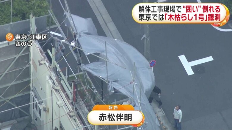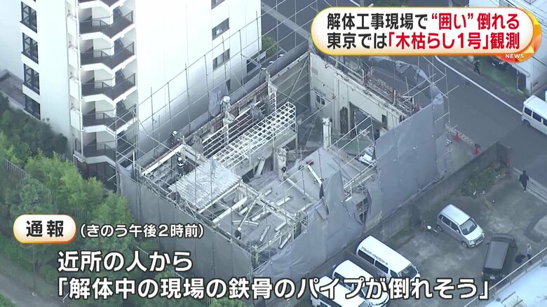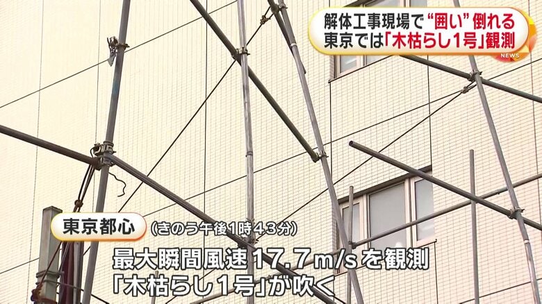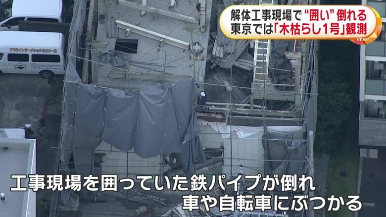 「木枯らし1号」解体現場の鉄パイプ倒れ車や自転車を直撃 最…