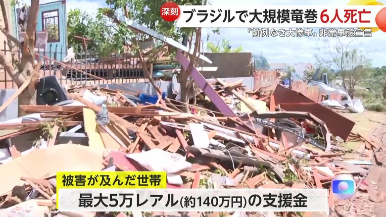 「ブラジルで非常事態宣言」大規模竜巻6人死亡1000人以上が家… ギャラリー 屋根などを吹き飛ばされている辺り一帯の住宅(7日、リオ・ボニート・ド・イグアス) 11/21 記事に戻る 家を失い避難を余儀なくされているという1000人以上 12/21 記事に戻る 750人以上が重軽傷を負った竜巻 13/21 記事に戻る 14/21 記事に戻る 15/21 記事に戻る 16/21 記事に戻る 17/21 記事に戻る 18/21 記事に戻る 19/21 記事に戻る 20/21 記事に戻る 21枚目以降の画像を見る 1 2 3
