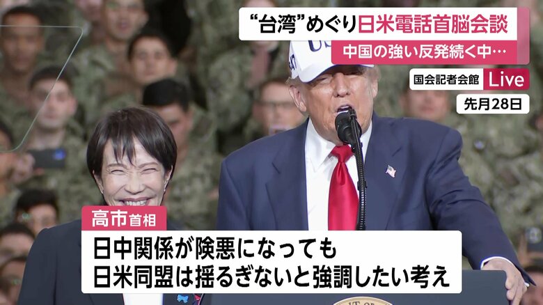 “台湾有事”巡る発言で高市首相がトランプ大統領と電話会談……