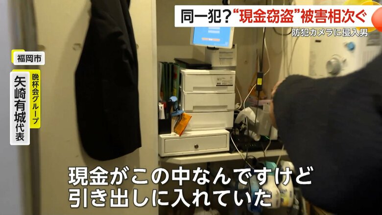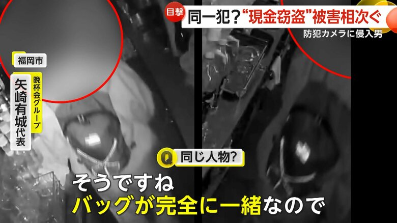 「同一犯か?」飲食店で“合鍵侵入”疑い…防犯カメラに映る不… ギャラリー 1/11 記事に戻る 2/11 記事に戻る 3/11 記事に戻る 4/11 記事に戻る 5/11 記事に戻る 6/11 記事に戻る 防犯カメラがとらえた怪しげな雰囲気の人物(23日午後2時ごろ・福岡市博多区) 7/11 記事に戻る 手元をライトで照らし、店内をくまなく物色している人物 8/11 記事に戻る 店の扉には鍵がかかっていて、鍵を壊された形跡がなかった 9/11 記事に戻る 経営者の男性は「従業員が頑張って稼いだお金を取られたのがすごく腹立たしい」と話す 10/11 記事に戻る 11枚目以降の画像を見る 1 2