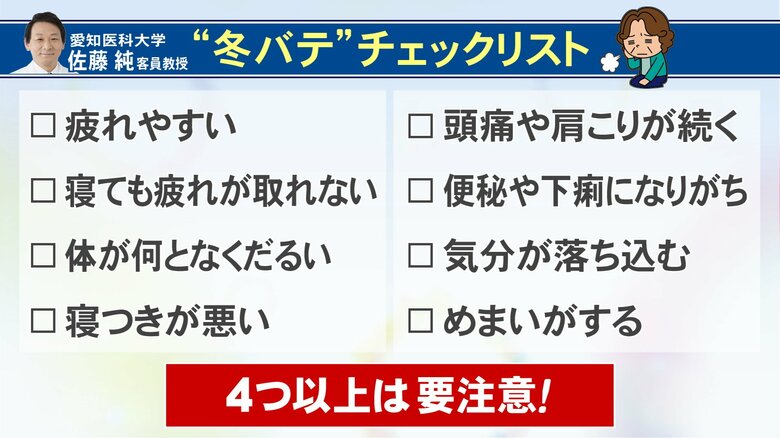 4つ当てはまったら要注意…この時季の体調不良『冬バテ』代表…