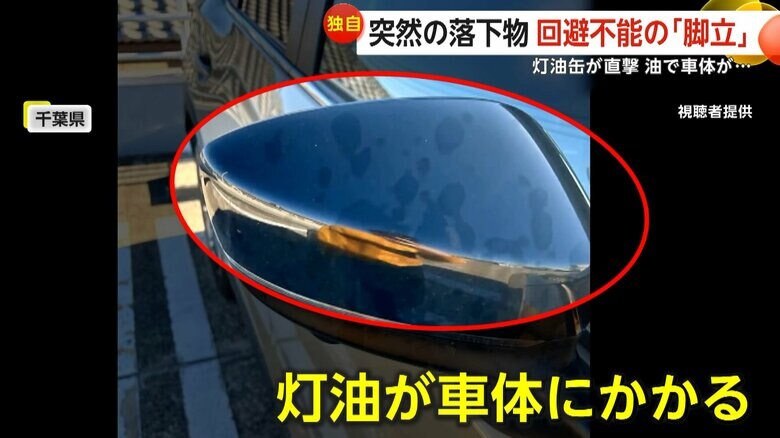 「悪い予感がまさか本当に」回避不能…路上に落下していた脚立… ギャラリー 1/11 記事に戻る 路上の脚立を踏んだが大きなトラブルには至らなかった(視聴者撮影) 2/11 記事に戻る 目撃者は「対向車線のトラックから灯油缶が飛んできた」と話す(視聴者撮影) 3/11 記事に戻る 飛んできた灯油缶(視聴者撮影) 4/11 記事に戻る 5/11 記事に戻る トラックから飛来した灯油缶が走行中の車に衝突する瞬間(12日・千葉県)(1) 6/11 記事に戻る トラックから飛来した灯油缶が走行中の車に衝突する瞬間(12日・千葉県)(2) 7/11 記事に戻る トラックから飛来した灯油缶が走行中の車に衝突する瞬間(12日・千葉県)(3) 8/11 記事に戻る トラックから飛来した灯油缶が走行中の車に衝突する瞬間(12日・千葉県)(4) 9/11 記事に戻る トラックから飛来した灯油缶が走行中の車に衝突する瞬間(12日・千葉県)(5) 10/11 記事に戻る 11枚目以降の画像を見る 1 2