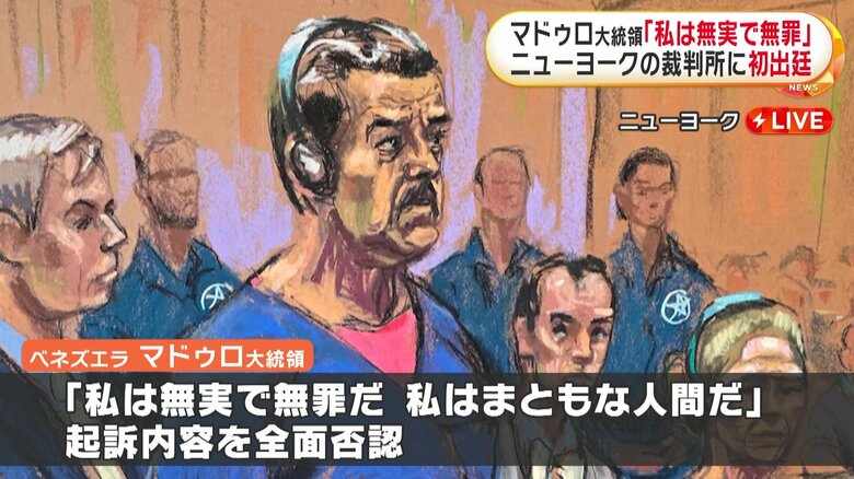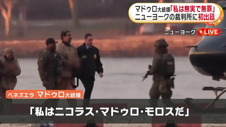 「私はまともな人間」ベネズエラのマドゥロ大統領が無罪主張 … ギャラリー 1/8 記事に戻る ヘリで移送されたマドゥロ氏 2/8 記事に戻る 3/8 記事に戻る ヘリで移送されたマドゥロ氏 4/8 記事に戻る 5/8 記事に戻る 6/8 記事に戻る 7/8 記事に戻る 8/8 記事に戻る