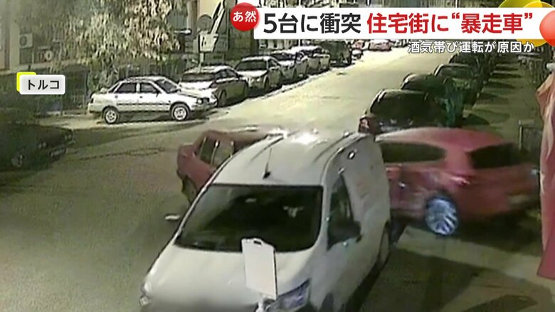 深夜の住宅街で駐車中の車に次々激突…1台の車が“前進と後退…