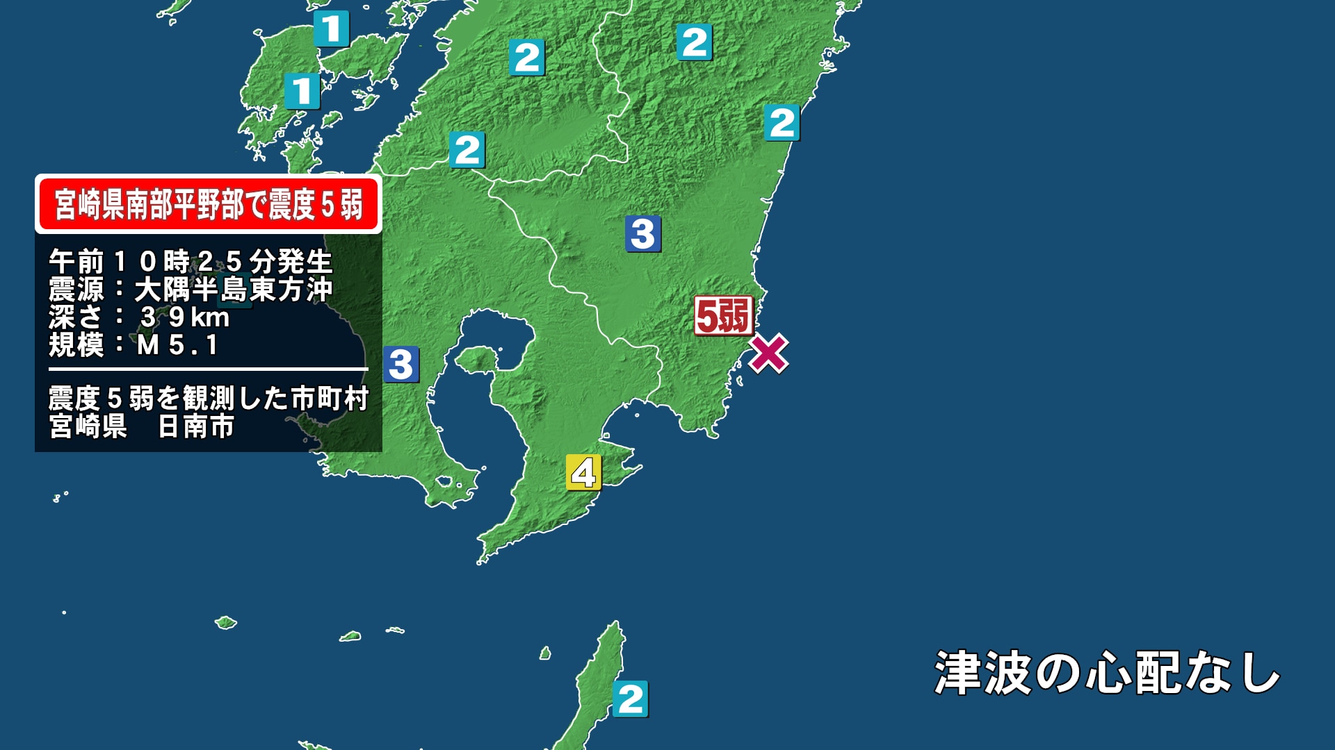 この地震による津波の心配はありません。 この地震について、緊急地震速報を発表しています。